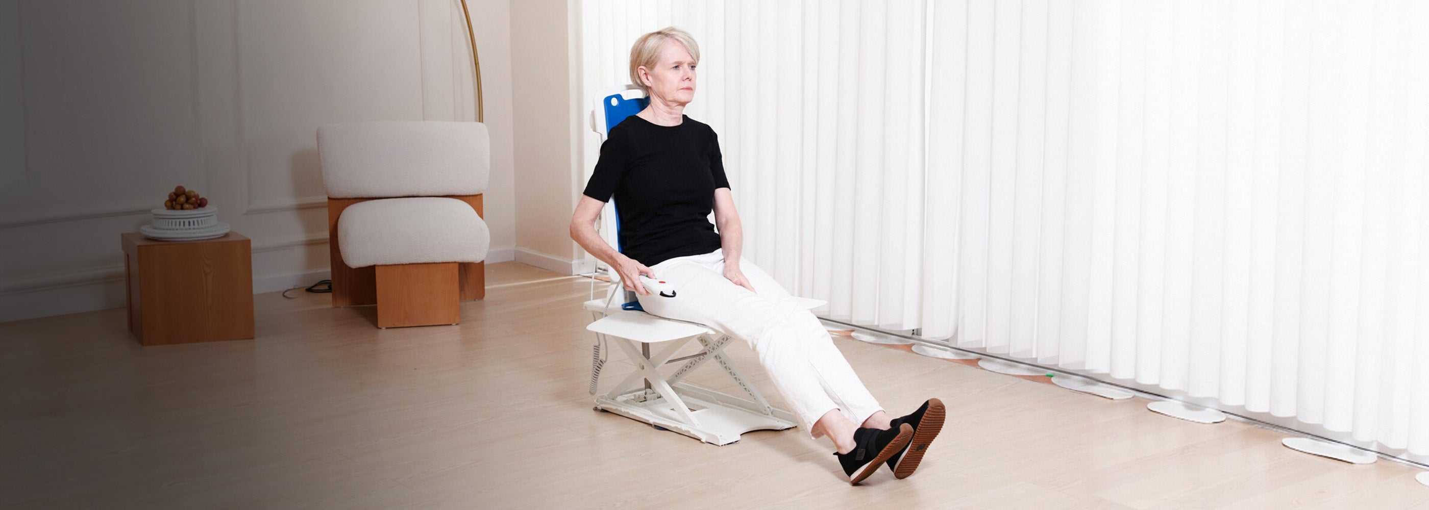 Nuestra silla de pie te ayuda a levantarte de forma segura, independiente y digna después de una caída. Descubre cómo funciona.