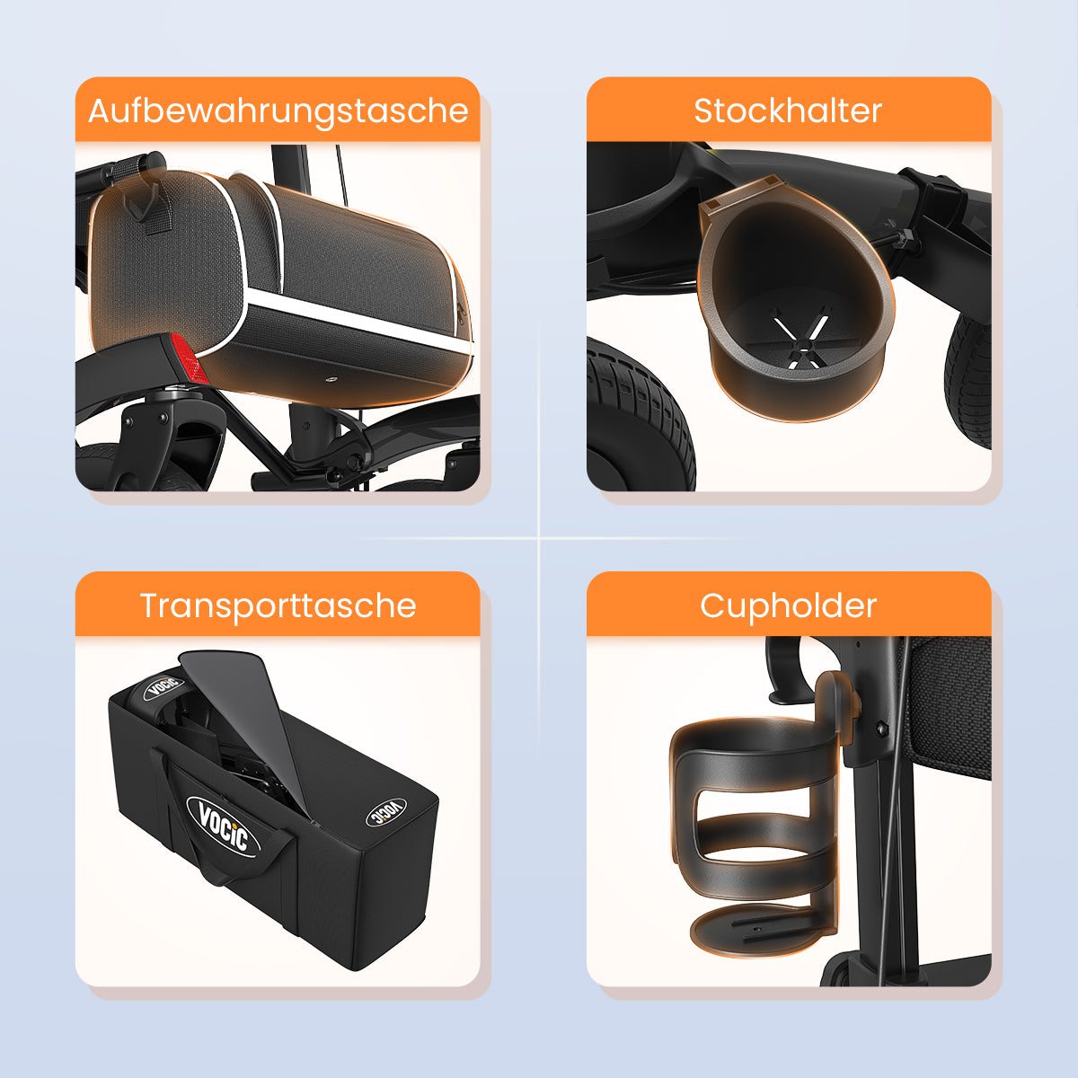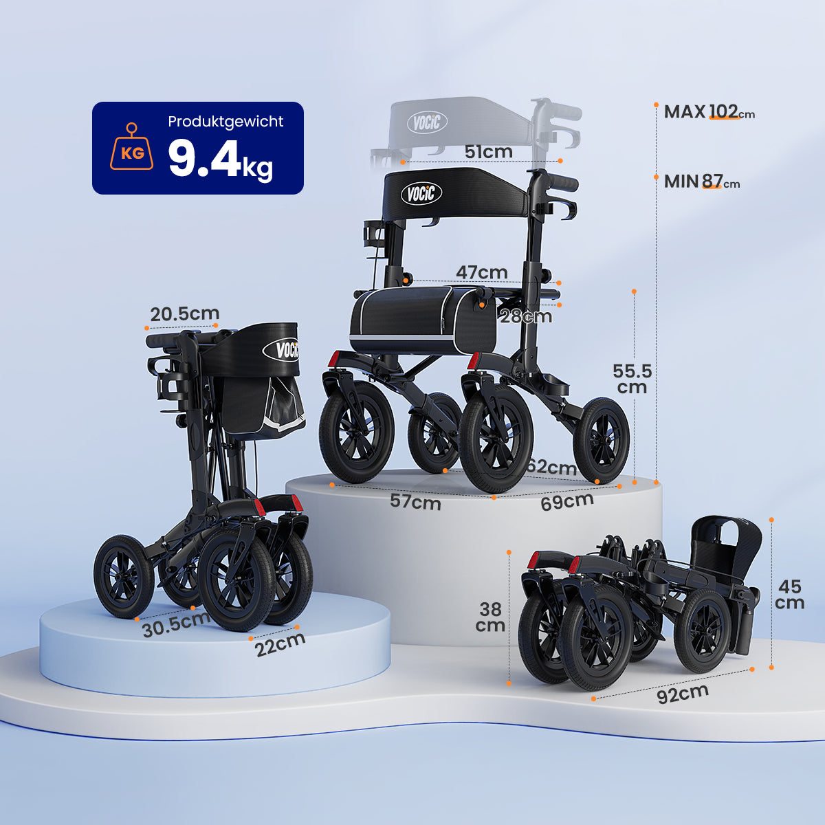 VOCIC Z52 Faltbarer Leichtgewicht-Rollator mit Sitz, für jedes Gelände