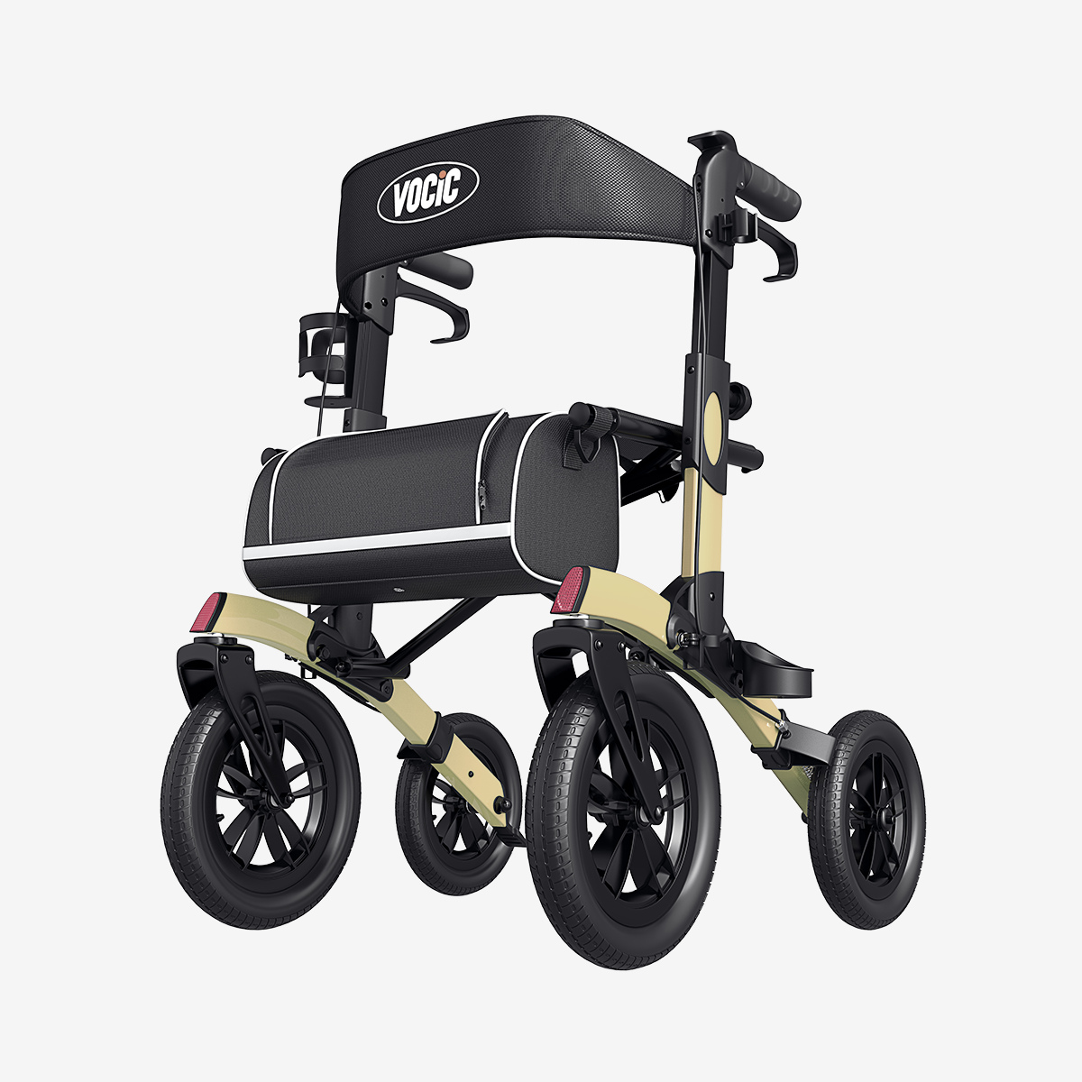 Der VOCIC Z52 Rollator ist faltbar, besonders leicht und für jedes Gelände geeignet, ideal für Spaziergänge auf Asphalt, Kies oder Waldwegen.