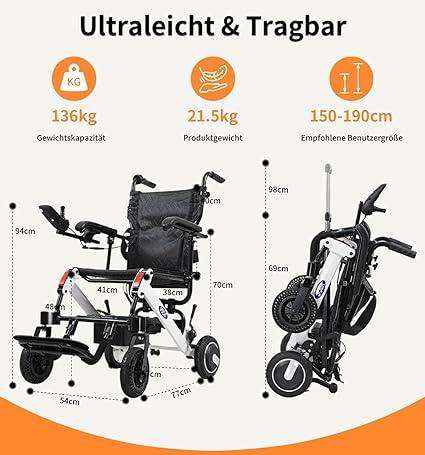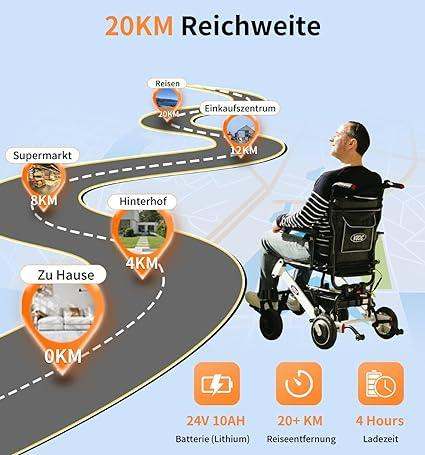 Der VOCIC V55 ist ein ultraleichter und faltbarer Elektrorollstuhl mit bis zu 20 km Reichweite. Durch sein kompaktes Design ist er tragbar, einfach zu verstauen und zugelassen für Flugreisen (Airline-konform).
