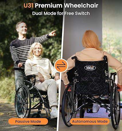 Der VOCIC U31 ist ein leichter, faltbarer Rollstuhl mit robuster Doppelbremse, ideal für den sicheren Gebrauch im Alltag oder unterwegs.