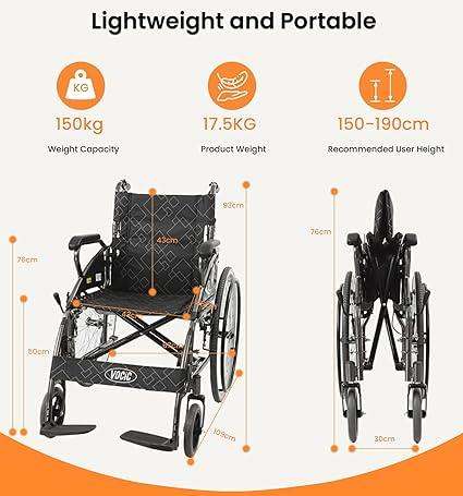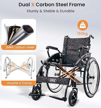 VOCIC U31 Leichter Faltbarer Manueller Rollstuhl mit Doppelbremse