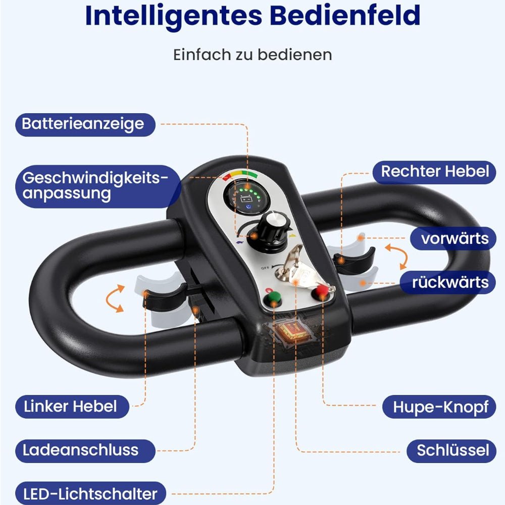 Das VOCIC D42 Elektromobil bietet Ihnen eine zuverlässige und bequeme Lösung für tägliche Wege und längere Ausflüge. Mit seiner robusten Bauweise, intuitiven Steuerung und modernen Ausstattung ist das VOCIC D42 Elektromobil ideal für Senioren und mobilitätseingeschränkte Personen.