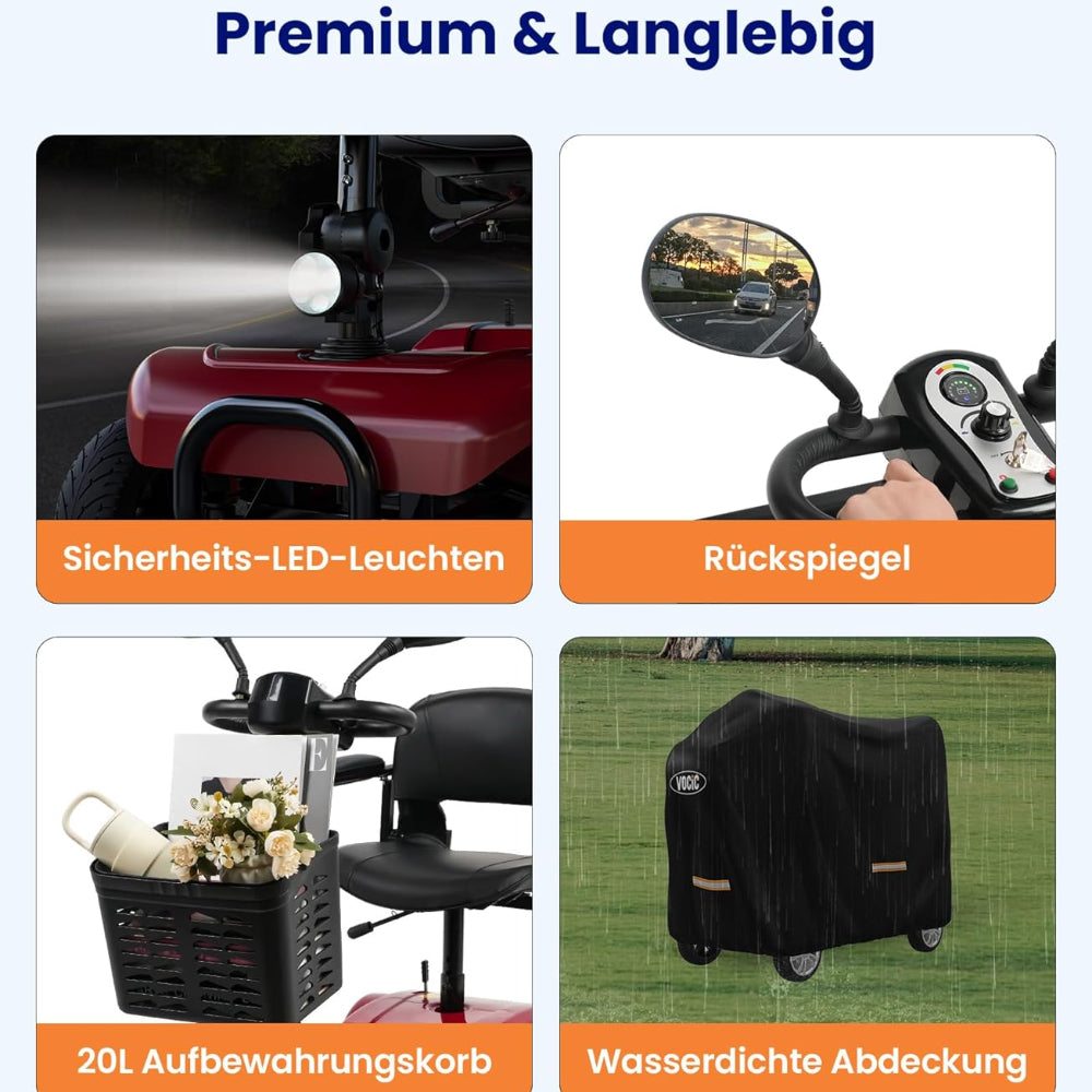 Mit dem VOCIC D42 Elektromobil bleiben Sie unabhängig und flexibel, ob beim Einkaufen, Spazieren oder auf Reisen. Das durchdachte Design und die hohe Sicherheitsausstattung machen das VOCIC D42 Elektromobil zu einem zuverlässigen Begleiter in jeder Lebenslage.