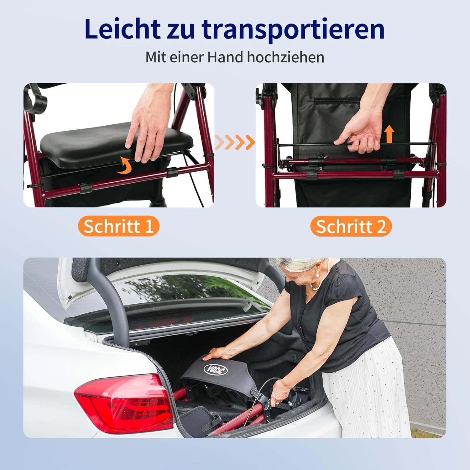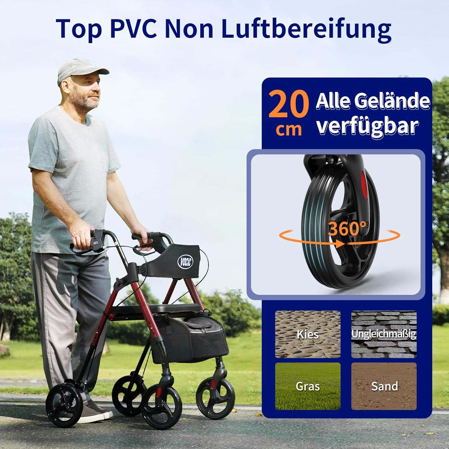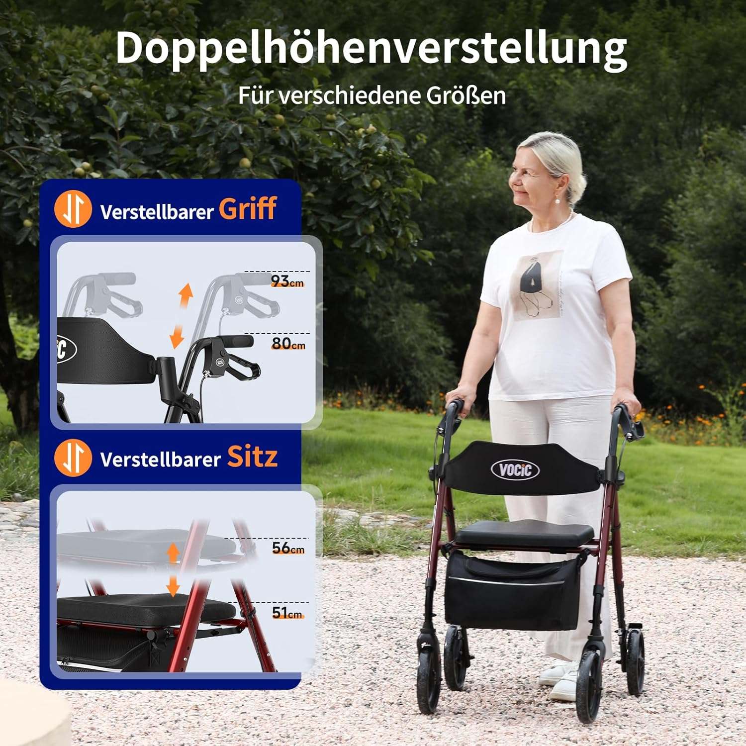 VOCIC Z21 Rollator, Ergonomischer, Faltbarer 4 Rad Rollator