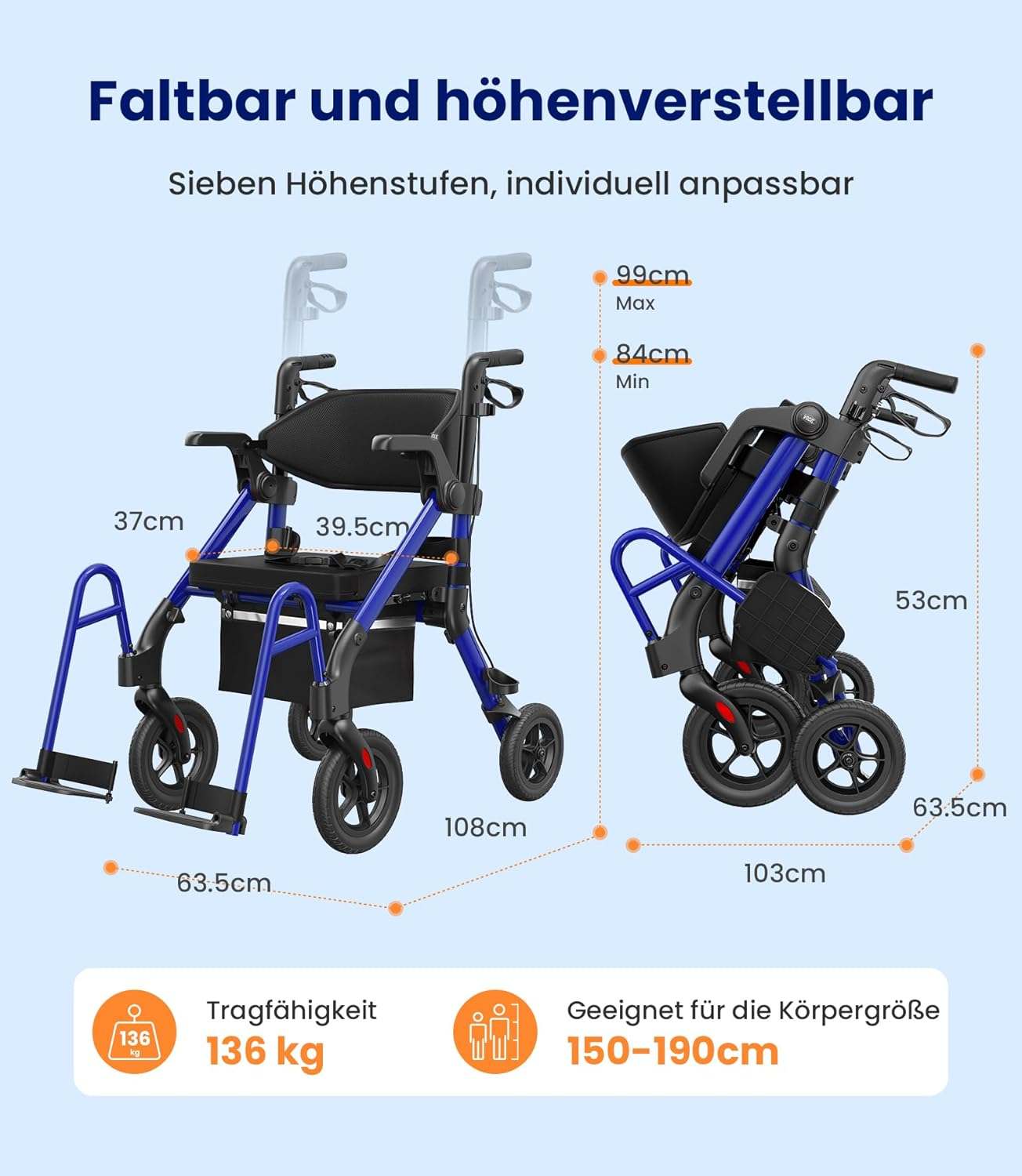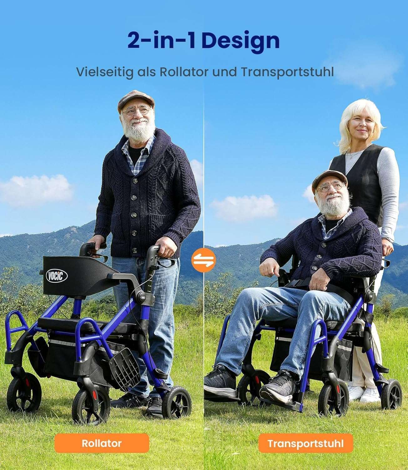 VOCIC Z55 2-in-1 Rollator: Rollator und Rollstuhl in einem Gerät